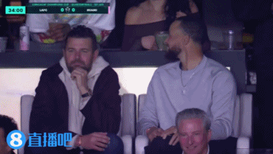 第34分钟,镜头给到在场边看球的库里。↓