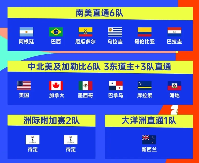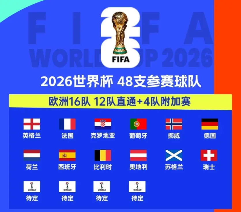当好意思国、墨西哥、加拿大算作人领先锁定入场券,当欧洲12强、非洲9席、亚洲8队等42支球队通过世初赛杀出重围,2026好意思加墨宇宙杯的疆域已初现空洞。这场初度扩军至 48 队的足坛盛宴,不仅改写了宇宙杯的参赛范畴,更在限额分拨中折射出各人足球格式的奥秘变迁。剩余6个限额的悬念将在来岁3月的附加赛中揭晓,而注定是热烈的争夺战。