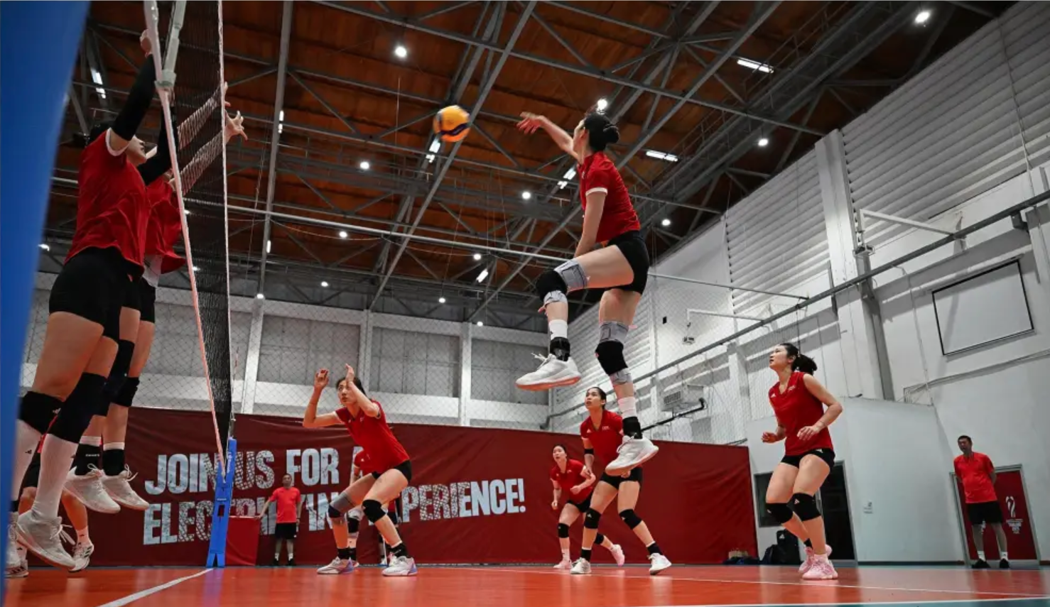 配景板标语“JOIN US FOR AN ELECTRIFYING EXPERIENCE 加入咱们,体验兴盛东说念主心的体验”亦然格外稳妥,营造出热血备战的氛围。