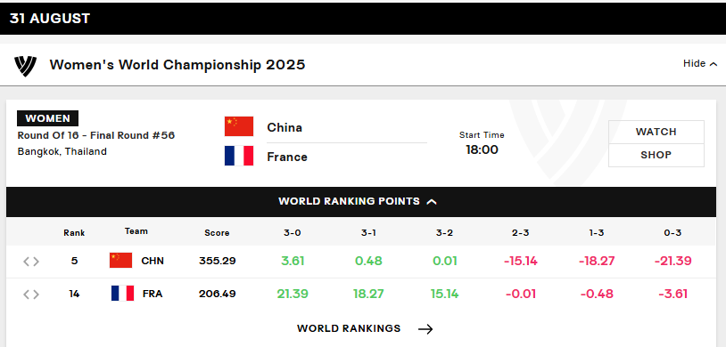 字据海外排联公布的胜负球积分规章清晰,中国女排现辞寰球名轮番5,积分为355.29,而法国队则排在第14位,积分为206.49,经营词,从不同比分的积分浮动来看,中国队若胜3-0仅得3.61分,3-1则惟一0.48分,3-2只标识性的+0.01分。若0-3失利则可能丢掉高达21.39分,就算是2-3输球也要扣掉15.14分。