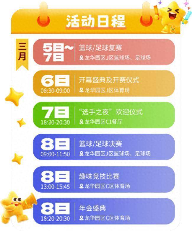 诸君职工家东说念主们,本年“富皇”的年会可太好玩啦!工业富联径直把年会搬到了畅通场,为公司职工经心筹划了一场AI畅通嘉年华!3月5日至8日,工业富联将在深圳举办2026年会盛典,不仅有全球职工组队PK的篮球赛、足球赛和事理竞赛,还有宽广明星大咖现场助兴的嘉年华舞台,号称实力“宠职工”典范!接下来,让咱们望望有哪些亮点值得期待。